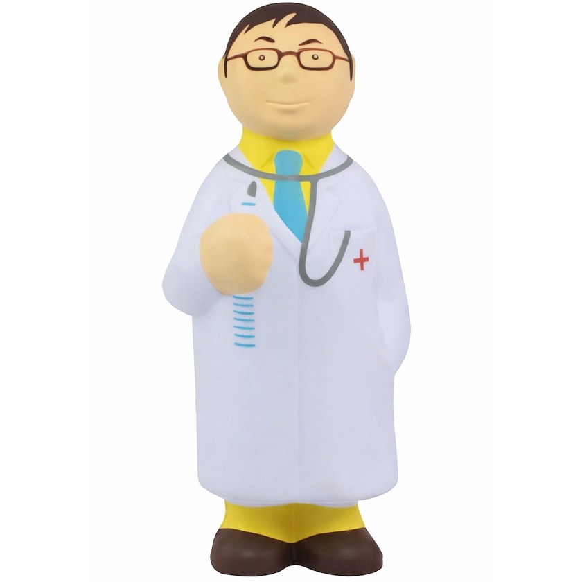 Stressball in Form eines Arztes im Arztkittel. Lassen Sie sich von einem Arzt helfen, Ihren Stress loszuwerden! Der Aufdruck ist von höchster Qualität.