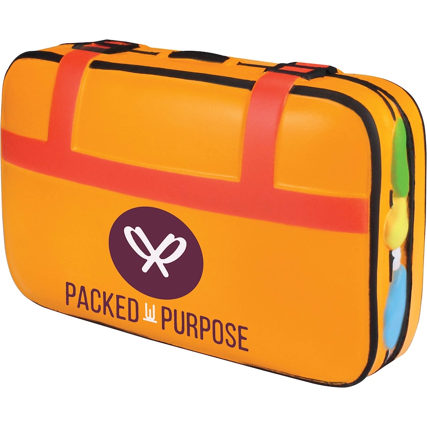 Anti-Stressball in Form eines klassischen Koffers. Perfekt für Reisebüros und Fluggesellschaften. Der Druck hält Kneten über einen sehr langen Zeitraum aus.