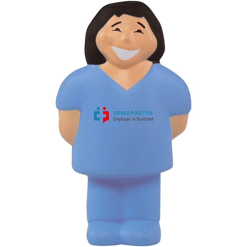 Anti-Stressball in Form einer Krankenschwester. Ein perfektes Werbeprodukt im Bereich Gesundheit und Pflege. Werben Sie für ihr Unternehmen und helfen Sie gleichzeitig dabei Muskeln zu entspannen.