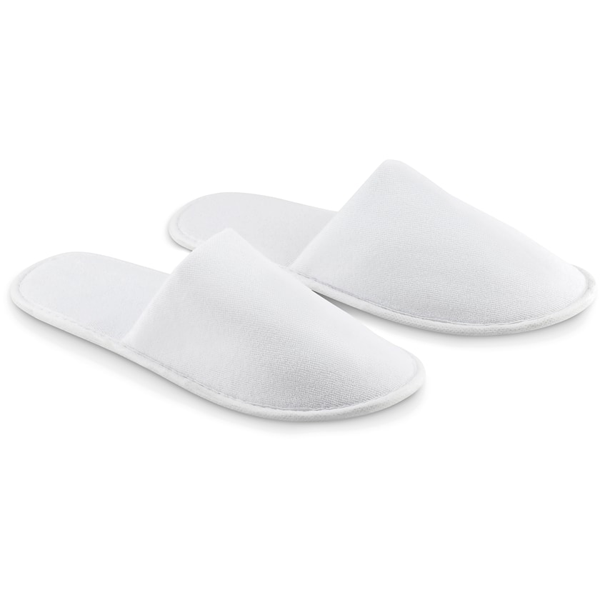 Ein Paar Badezimmerpantoffeln. Die Badezimmerpantoffeln haben die Größe 44-45 und werden in einem Geschenkbeutel geliefert.