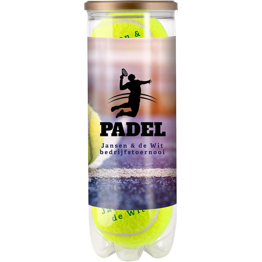 Set aus drei Padelbällen bedrucken samt Etikett im eigenen Design. Der Druckpreis bezieht sich auf den Druck auf die drei Paddelbälle sowie das Etikett. Die Paddelbälle sind gasgefüllt und werden in Europa hergestellt.