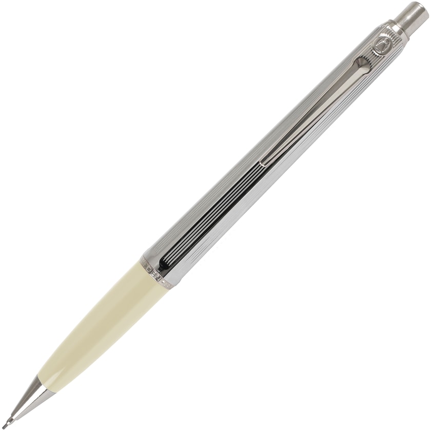 Beliebter Kugelschreiber Ballograf Epoca Chrome als Druckbleistift. Der obere Teil besteht aus Metall und der untere aus hochwertigem Kunststoff. Der Druckbleisft hat ein festes Rohr für die Mine, was für eine sehr präzise Schrift garantiert. Die Minen haben eine Dicke von 0,5 mm.