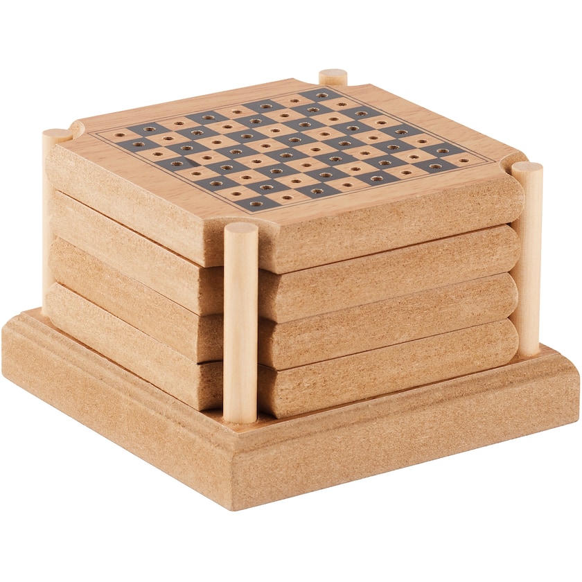 Glasuntersetzer und Spiel in einem. Das Set enthält vier Untersetzer, die aus vier Spielen bestehen: Schach, Backgammon, Tic Tac Toe und chinesisches Schach. Unterhaltung für Kinder und Erwachsene!