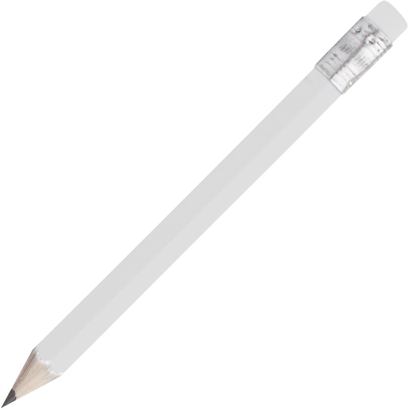 Kleiner Bleistift mit Radiergummi. Der Radiergummi entspricht der Farbe des Bleistifts. Wird gespitzt geliefert.