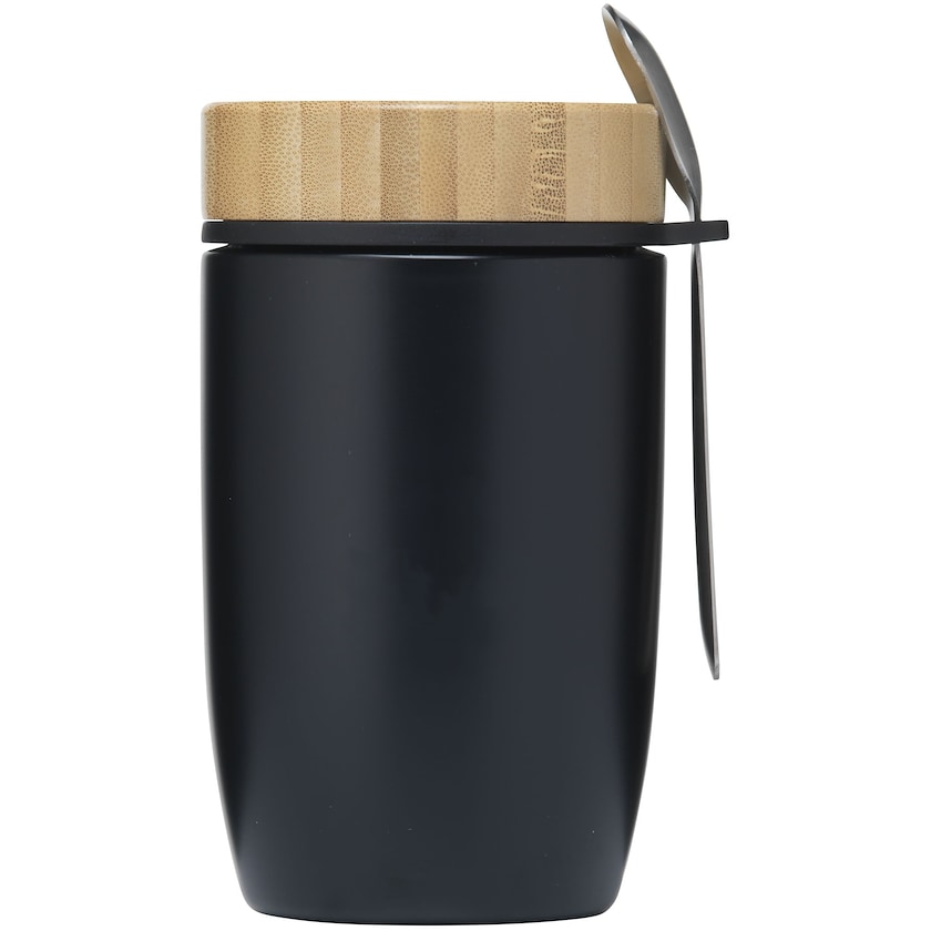 Thermosbehälter für Lebensmittel aus Edelstahl mit Bambusdeckel. Le Creusot hat doppelte Wände mit Vakuumisolierung. Ein Edelstahllöffel ist im Lieferumfang enthalten. Die Thermoskanne ist auslaufsicher und eignet sich perfekt für alles, von Suppen bis hin zu Joghurt und Obst. Der Inhalt wird 8 Stunden warm und 24 Stunden kalt gehalten. Die Lieferung erfolgt einzeln verpackt in einem braunen Karton.