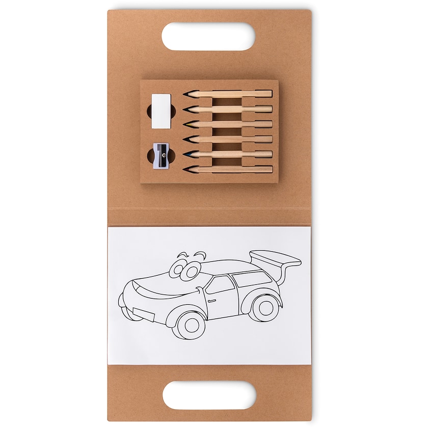 Cooles Malset für Kinder mit viel Platz für Ihren Druck. Danny enthält 30 Blatt zum Ausmalen, 6 Buntstifte, 1 Anspitzer und 1 Radiergummi.