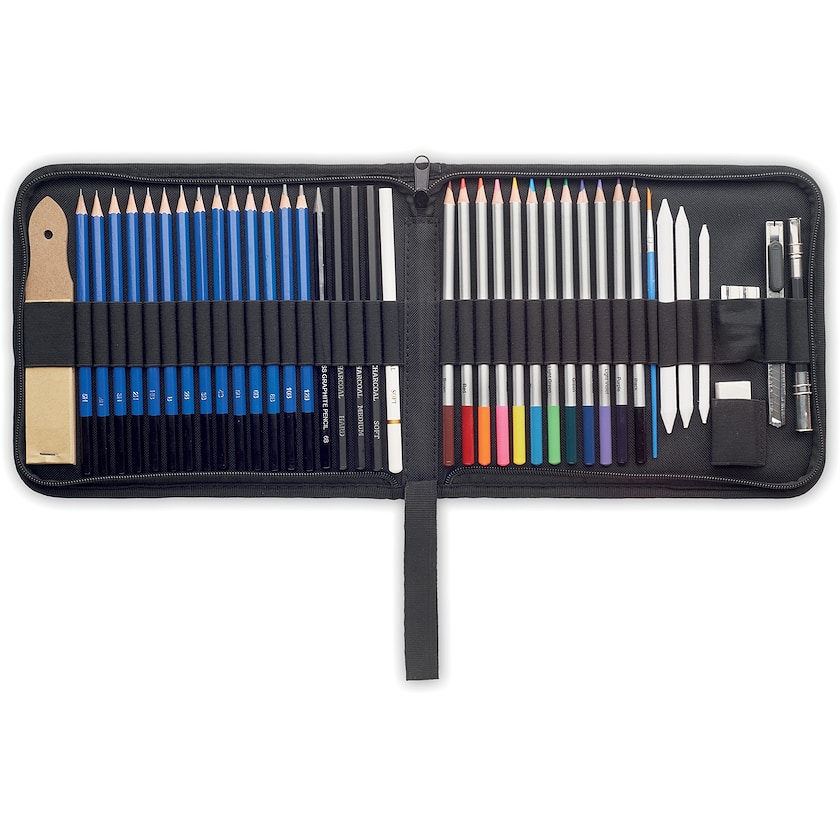 Aufwendiges Skizzen- und Zeichenset. Das Set wird in einem Reißverschlussetui aus umweltfreundlichem rPET geliefert. Enthält alles für den angehenden Künstler.