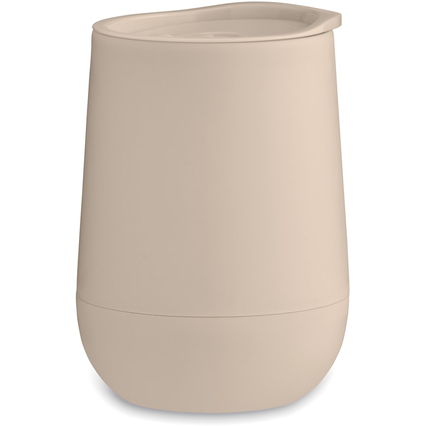 Preisgünstiger Take-away-Becher mit doppelwandiger Oberfläche. Der Deckel verfügt über eine verschiebbare Trinktülle.