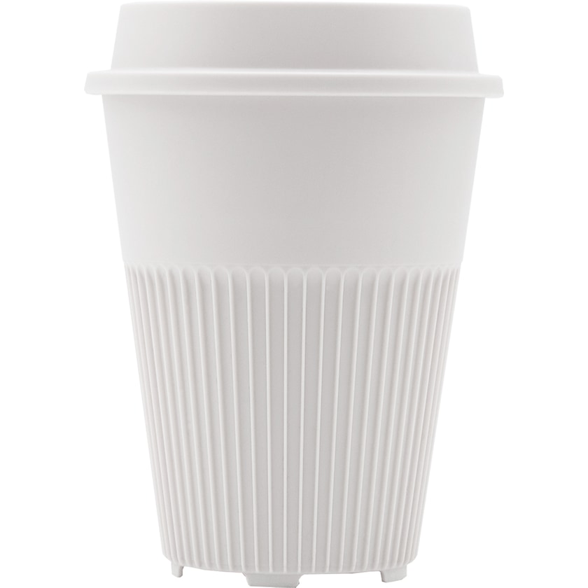 Becher zum Mitnehmen von Circular & Co. Der Becher ist langlebig, wiederverwendbar, stapelbar und vollständig recycelbar. Die Rippen sorgen dafür, dass der Becher nicht unnötig heiß wird und bieten einen guten Halt. Der Boden ist schnelltrocknend. Der Deckel hat eine clevere Trinköffnung. Passt sowohl in den Becherhalter im Auto als auch in die Kaffeemaschine am Arbeitsplatz. Lebensmittelecht und BPA-frei. Sollte im oberen Fach der Spülmaschine gereinigt werden.