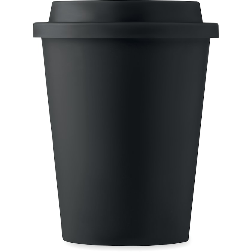 Takeaway-Becher mit doppelten Wänden. Der Becher ist absolut auslaufsicher. Perfekt für alle, die viel unterwegs sind! Beim 1-farbigen Druck beträgt die Druckfläche ganze 220 x 60 mm.