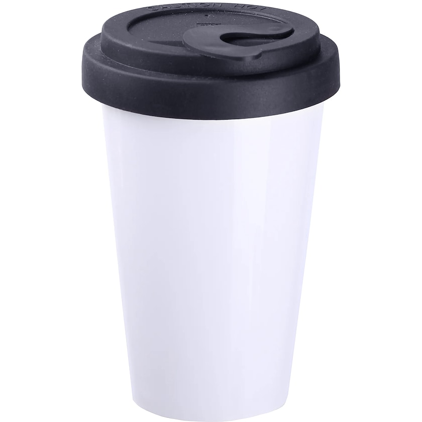 Porzellanbecher zum Mitnehmen mit einzigartigem Gummideckel mit Auslaufschutz. Der Becher ist doppelwandig, sodass Ihr Getränk lange warm bleibt.