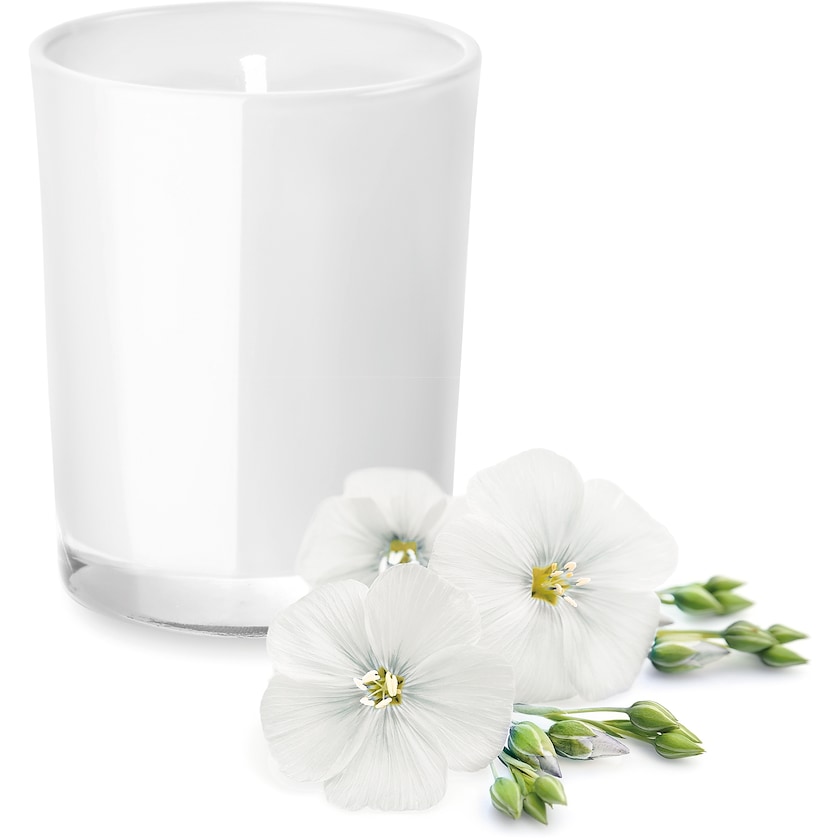 Duftkerzen sind in verschiedenen Geschmacksrichtungen erhältlich. Wählen Sie zwischen den Düften Leinen, Vanille und Sandelholz.