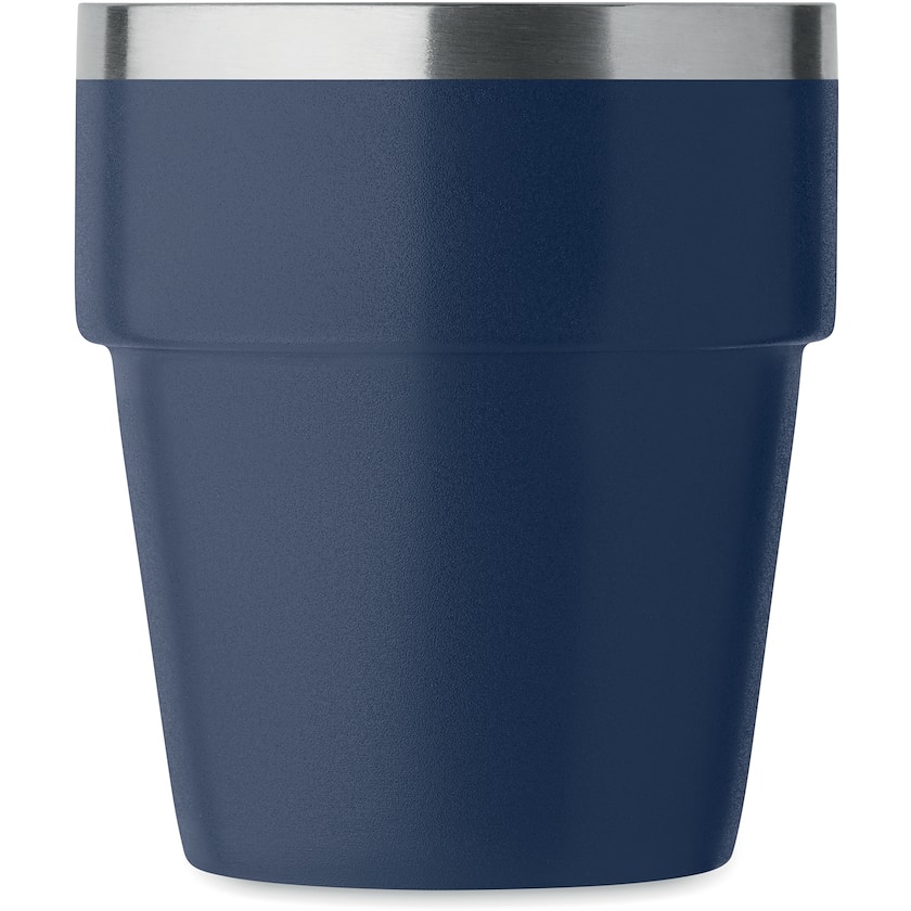 Wunderschöner stapelbarer Metallbecher. Cortina besteht zu 90 % aus recyceltem Edelstahl und zu 10 % aus normalem Edelstahl. Dank der Doppelwände hält der Becher das Getränk lange warm.