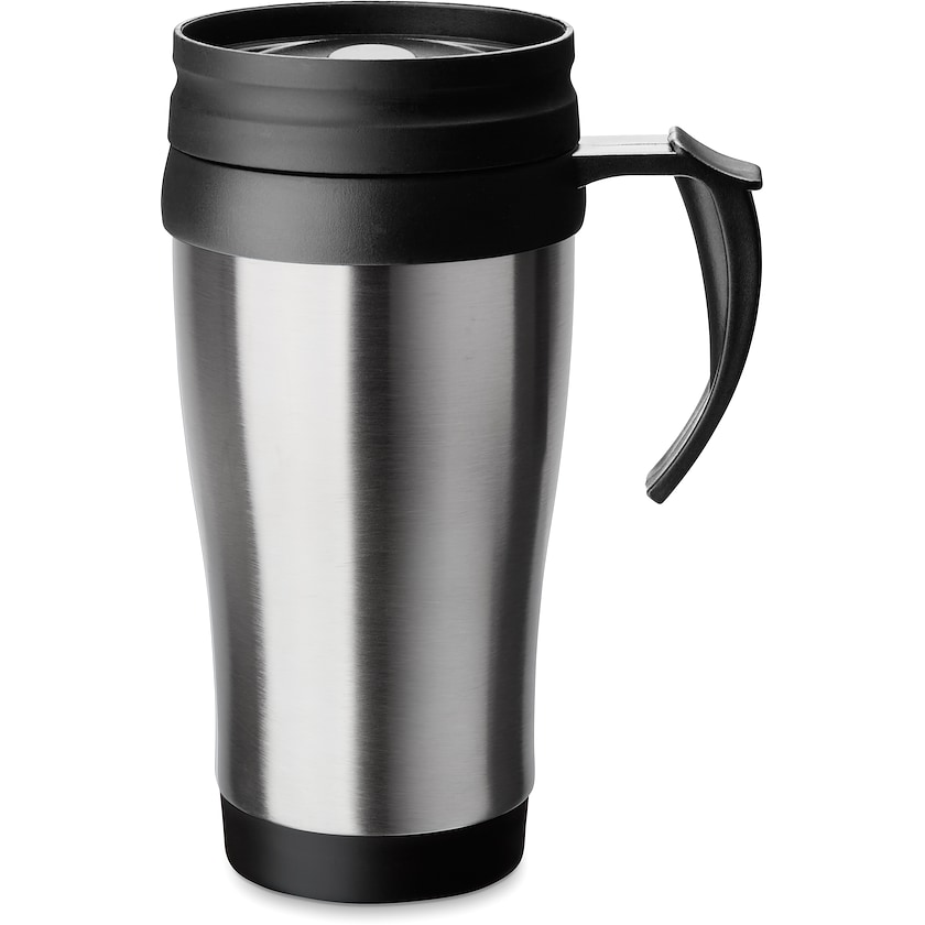 Günstiger Metallbecher aus rostfreiem Stahl. Innenseite aus PP-Kunststoff. Hält heiße Getränke drei Stunden lang heiß und kalte Getränke sechs Stunden lang kalt. Die Beschriftung kann durch Druck oder Lasergravur erfolgen.