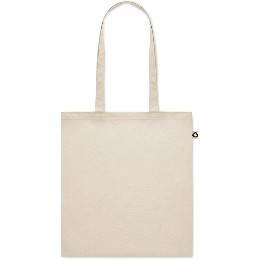 Umweltfreundliche Stofftasche, die ab 50 Stück gekauft werden kann. Belton Natural besteht zu 65 % aus recycelter Baumwolle und zu 35 % aus Baumwolle. Durch die langen Henkel lässt sie sich bequem über der Schulter tragen.
