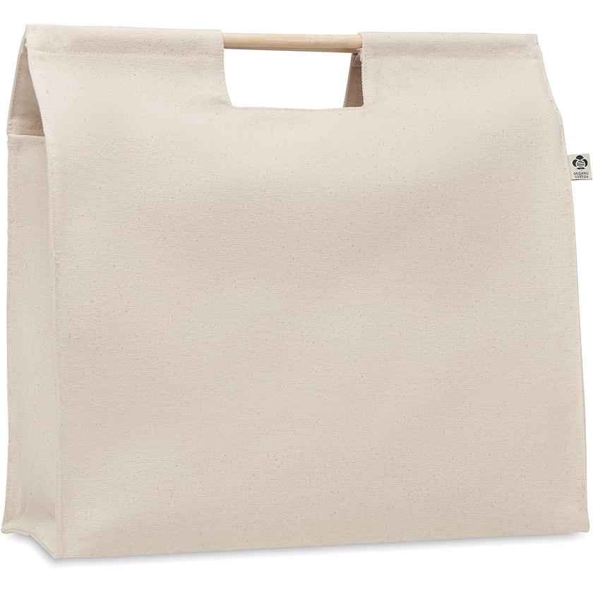 Ökologische Baumwolltasche mit Bambusgriff. Der Stoff ist aus Bio-Baumwolle. Perfekt zum Shoppen!