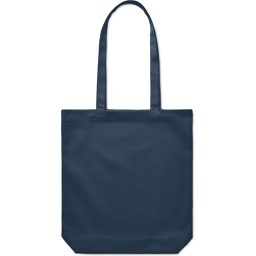 Baumwolltasche mit 270 Gramm Stoff, die in vielen Farben erhältlich ist. Die Henkel haben eine Länge, die das Tragen sowohl in der Hand als auch über der Schulter ermöglicht. Ravenna trägt ein Gewicht bis zu 2,5 kg.