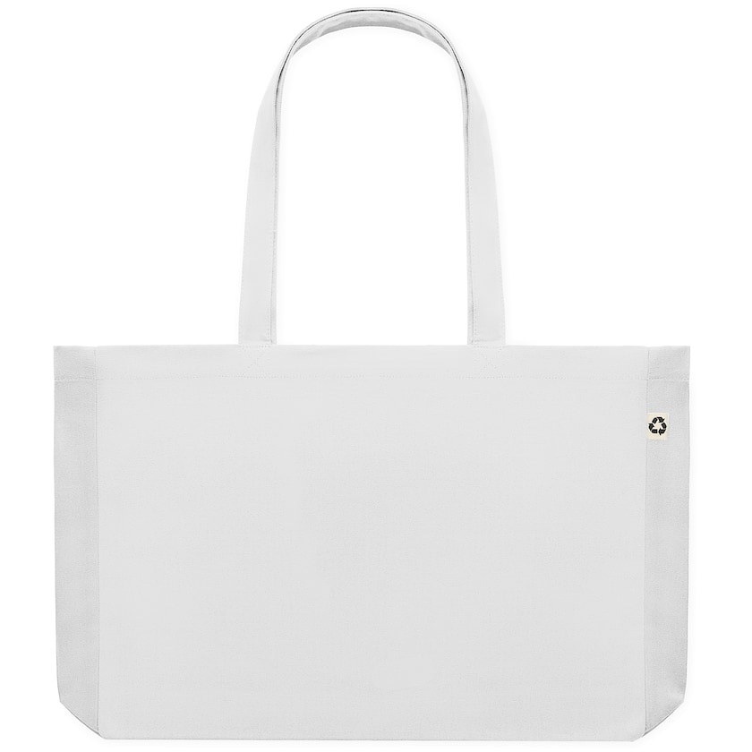 Umweltfreundliche Baumwolltasche aus recycelter Baumwolle. Somero hat lange Tragegriffe und einen gefalteten Boden, wodurch sie besonders geräumig ist. Die Tasche besteht aus einem starken 280-Gramm-Stoff aus 50 % recycelter und 50 % herkömmlicher Baumwolle.