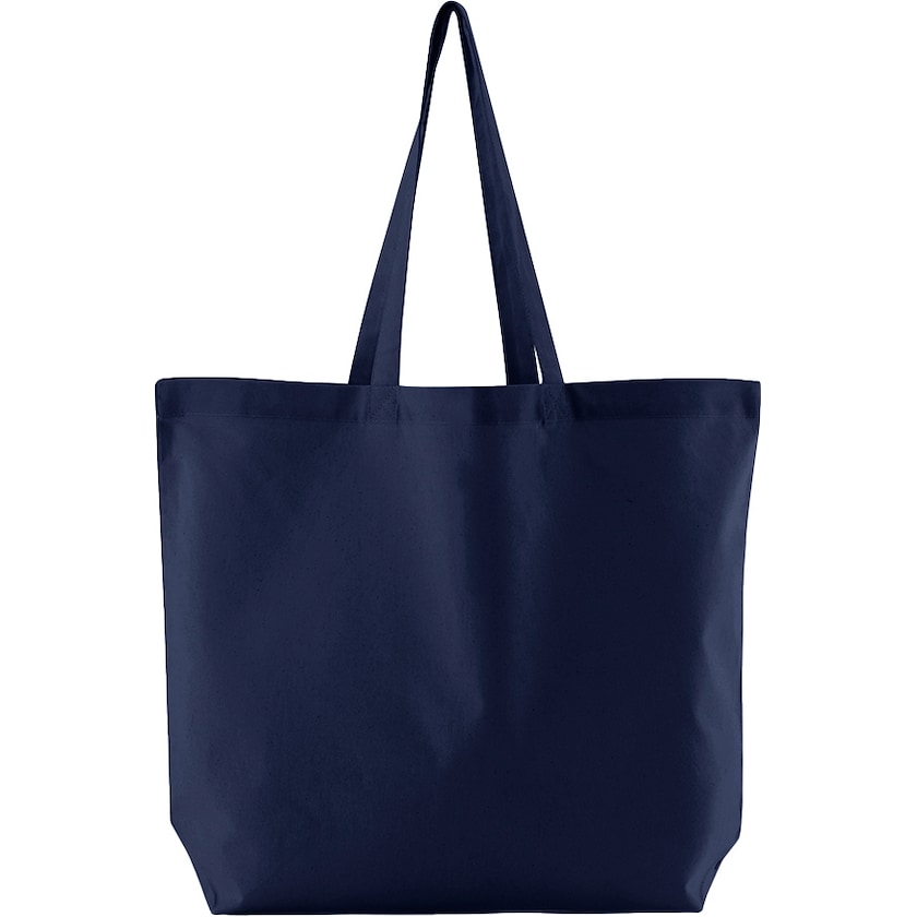 Breite Baumwolltasche aus Bio-Baumwolle. Der Stoff hat eine Stärke von 140 g/m². Kann über der Schulter oder in der Hand getragen werden.