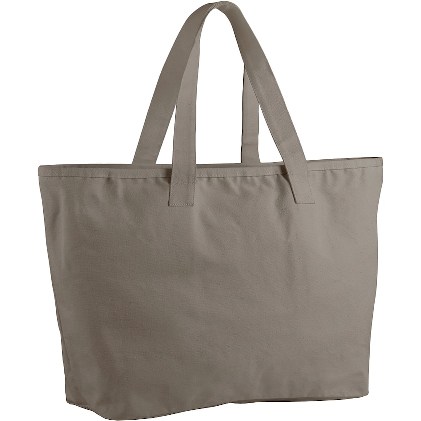 Große Tasche aus schwerem 475 Gramm Baumwoll-Canvas. Das Hauptfach ist mit einem Reißverschluss ausgestattet. Im Inneren befinden sich zwei kleinere Taschen. Kann sowohl über der Schulter als auch in der Hand getragen werden.