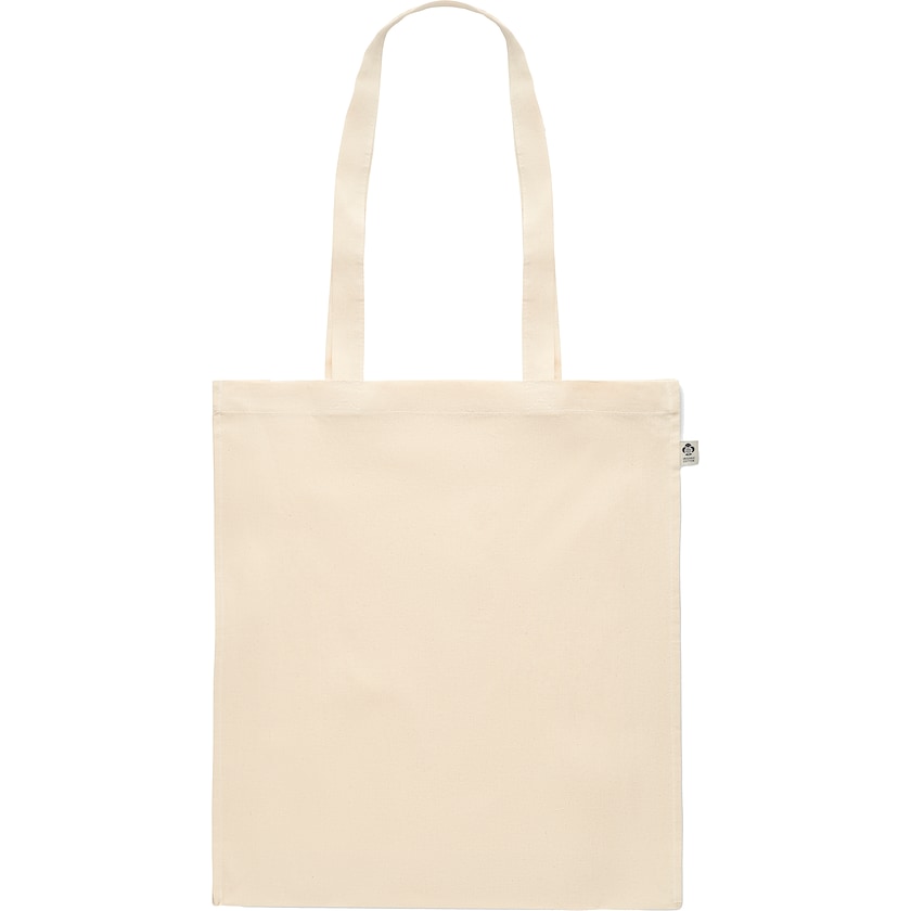 Baumwolltasche aus Bio-Baumwolle mit Boden. Dank der langen Griffe können Sie die Tasche bequem über der Schulter tragen. Eine ökologische und smarte Wahl!