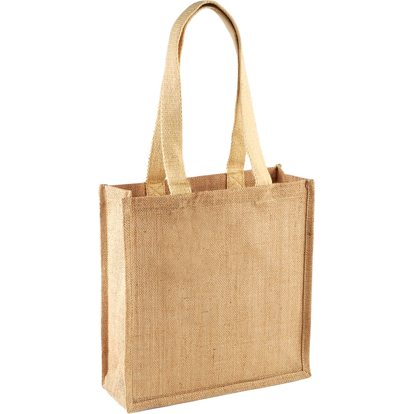 Sehr nützlich! Robuste Stofftasche aus Jute mit Griff aus Baumwolle. Kann über der Schulter oder in der Hand getragen werden.