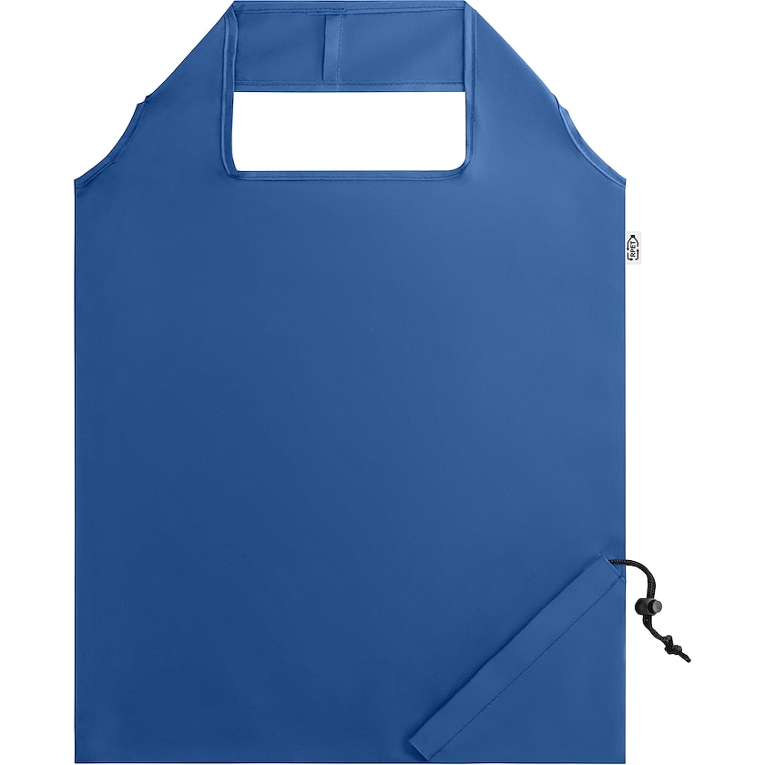 Umweltfreundliche Tasche, die bei Nichtgebrauch zu einer Kugel zusammengerollt wird. Dauphin wird aus rPET, also recycelten PET-Flaschen, hergestellt. Der maximale Druckbereich bezieht sich auf die zusammengerollte Tasche. Aber es ist auch Druck auf die ausgebreitete Tasche möglich. Die Druckfläche beträgt dann volle 220 x 160 mm, allerdings ist dann nur 1-farbiger Druck möglich.