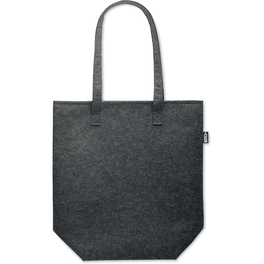 Filztasche aus umweltfreundlichem rPET. Dank der langen Henkel lässt sich die Tasche bequem über der Schulter tragen. Perfekt zum Shoppen! rPET wird aus recycelten PET-Flaschen hergestellt und ist daher eine gute Wahl für unsere Umwelt.