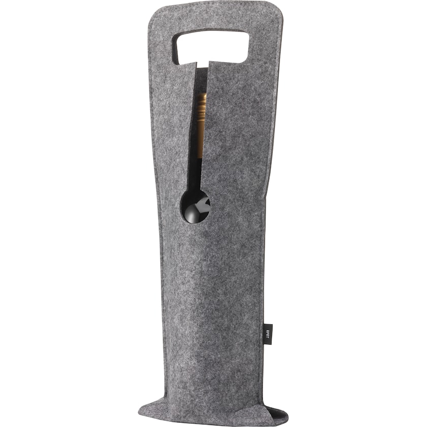Weinbeutel aus umweltfreundlichem Filz. Das Filzmaterial wird aus recycelten PET-Flaschen hergestellt. Die Weintasche bietet Platz für eine Weinflasche. Es ist nur 1-farbiger Druck möglich.
