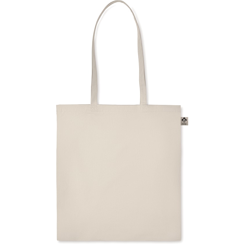 Baumwolltasche aus ökologischer 140-g/m²-Baumwolle. Die Stofftasche verfügt über lange Handgriffe und wird unter OEKO-TEX-Standards hergestellt.