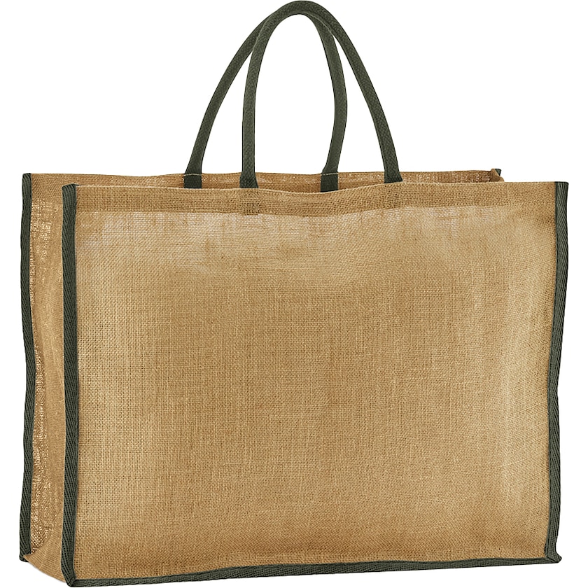 Großer Jutebeutel mit kurzen Baumwollhenkeln. Der Jutestoff ist unlaminiert, was der Box ein natürliches und sehr schönes Aussehen verleiht.