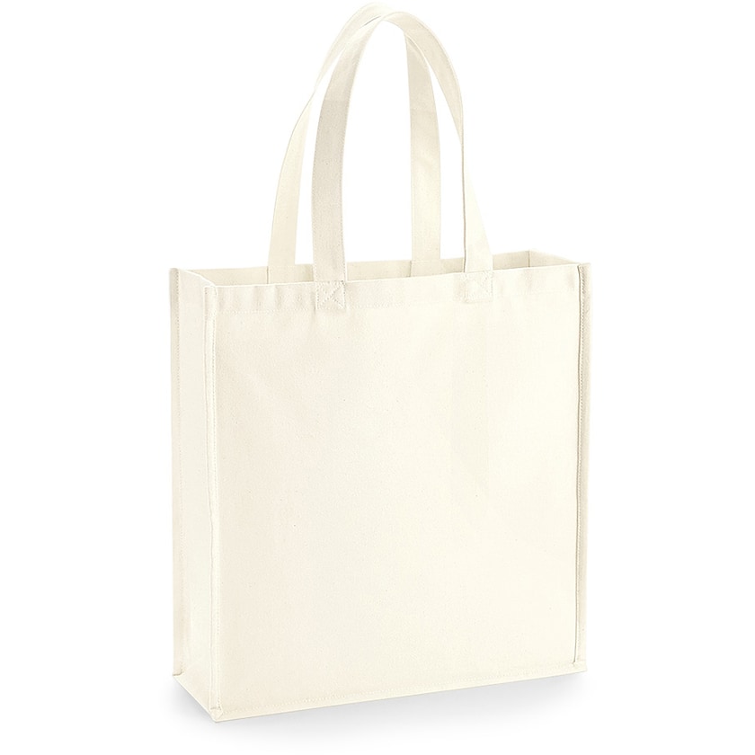 Baumwolltasche aus 407 g Baumwollstoff mit eigenem Druck. Die Tasche kann man in der Hand und über die Schulter tragen. Der Boden ist extrabreit und geräumig.