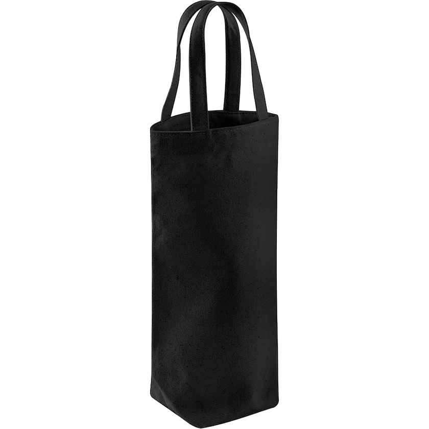 Fairtrade-zertifizierte Baumwolltasche mit Platz für eine Weinflasche. Baumwolltasche aus kräftigem Baumwollstoff aus 07 gram/ m² und mit Platz für eine Weinflasche mit bis zu 1,5 l.