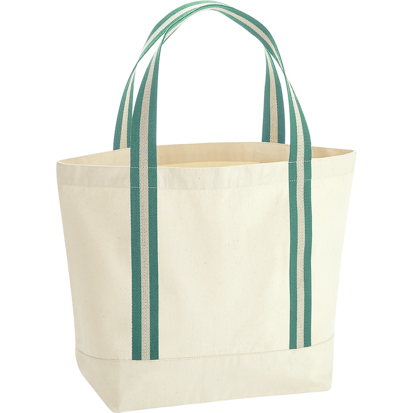 Strandtasche aus 100 % Bio-Baumwolle. Die Baumwolle ist gemäß Control Union CU811033 OCS-zertifiziert. Der Stoff hat eine Dicke von 340 Gramm/m². Die Griffe sind aus Baumwolle. Die Tasche kann entweder über der Schulter oder in der Hand getragen werden.