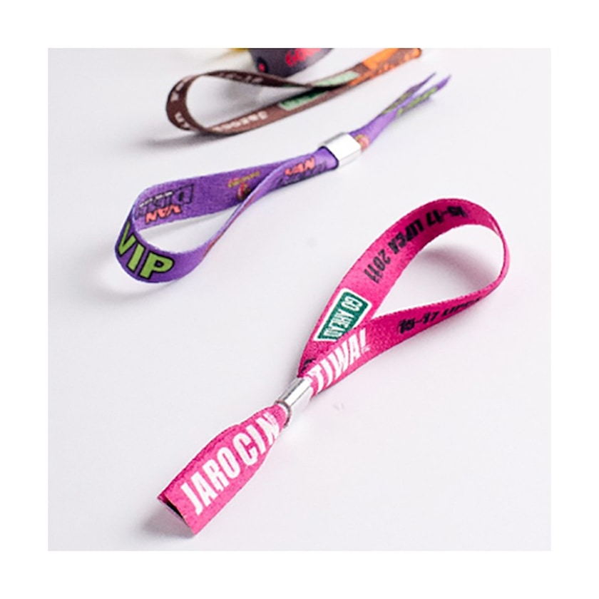 Trendiges Stoffarmband mit 4-Farbdruck auf beiden Seiten. Das Band wird mit Hilfe eines Aluminiumclips verschlossen, dazu wird am besten eine Crimpzange verwendet. Diese kann bei Axon Profil als Zubehör gekauft werden.