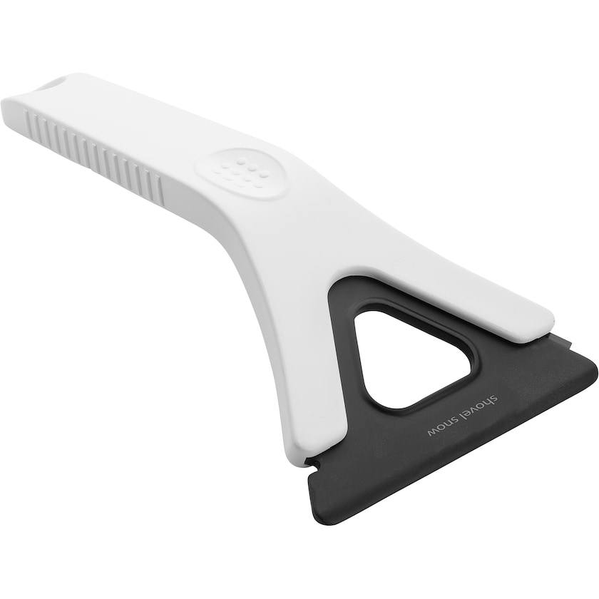 3-in-1-Eiskratzer aus recyceltem Polystyrol. Der Eiskratzer hat einen verstellbaren Kopf, mit dem man Eis schaben, Schnee entfernen und Wasser ableiten kann.
