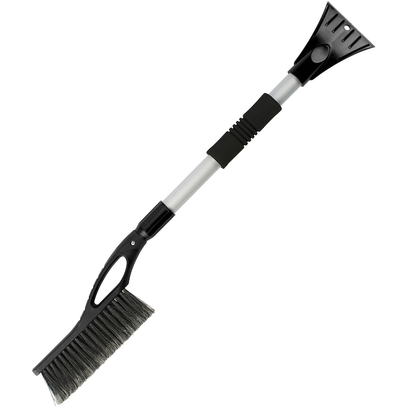 Schöner Eiskratzer mit Schneebürste und Teleskopgriff. Max. Länge 100 cm.