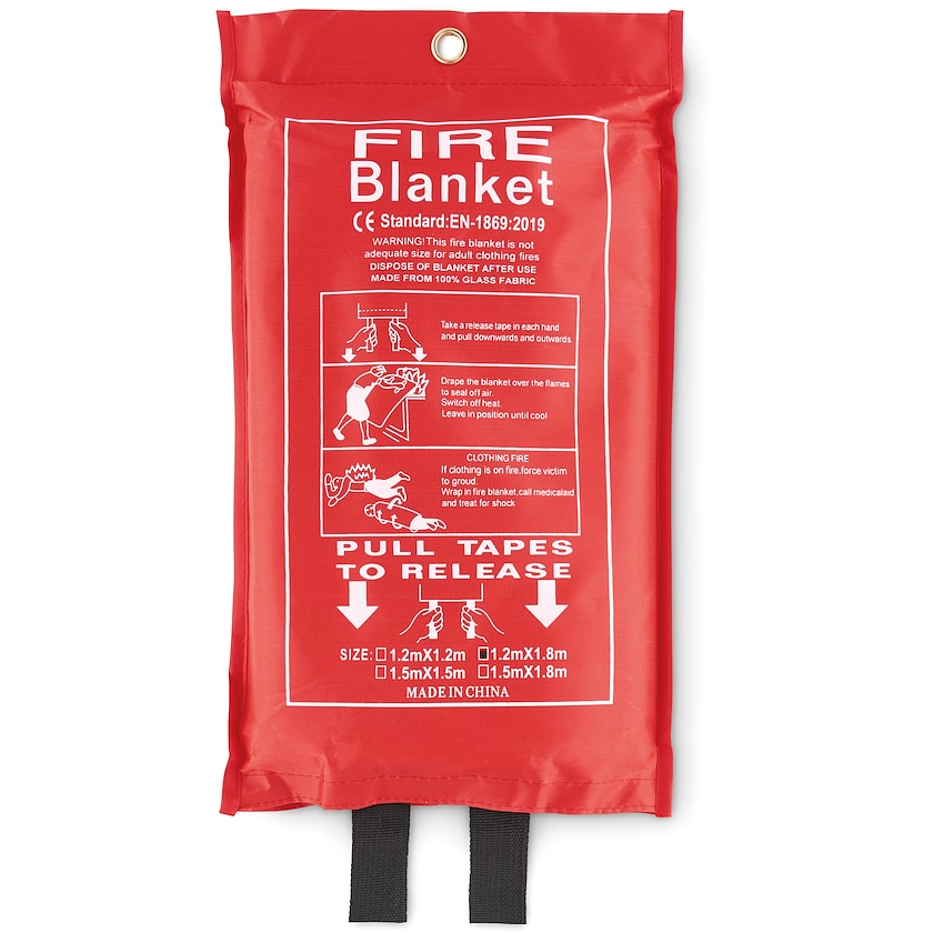 Feuerlöschdecke aus Glasfaser. Die Decke ist 180 x 120 cm groß.