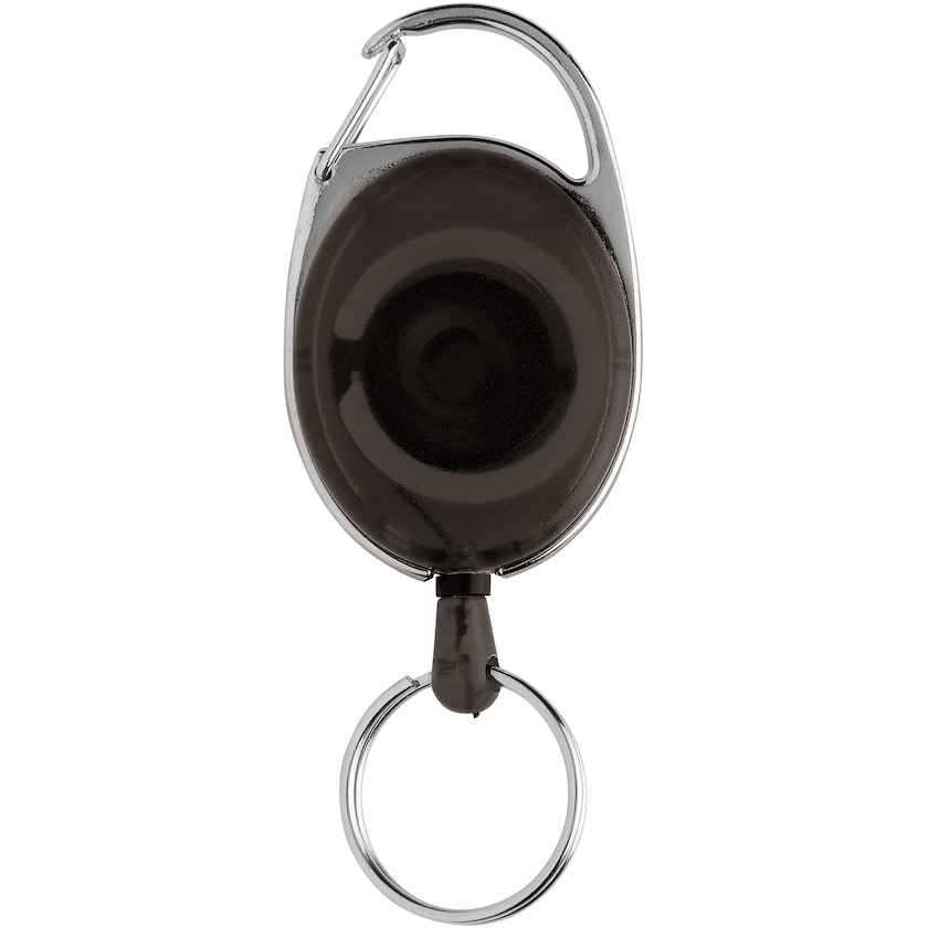 Skipasshalter aus recyceltem ABS. Das Kabel ist 60 cm lang. Auf der Rückseite ist ein Aufdruck angebracht, der darauf hinweist, dass die Skipasshülle aus recyceltem ABS besteht.