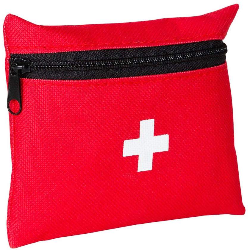 Erste-Hilfe-Set mit dem nötigsten für kleine Unfälle. Enthält unter anderem 10 Pflaster, 4 Desinfektionstücher, Verbände, Kompressen und eine Schere