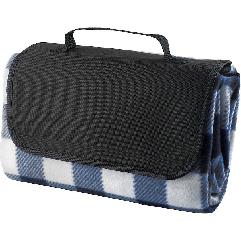 Fleecedecke für den Außenbereich. Der Druck erfolgt auf der schwarzen Oberfläche des Filzes.
