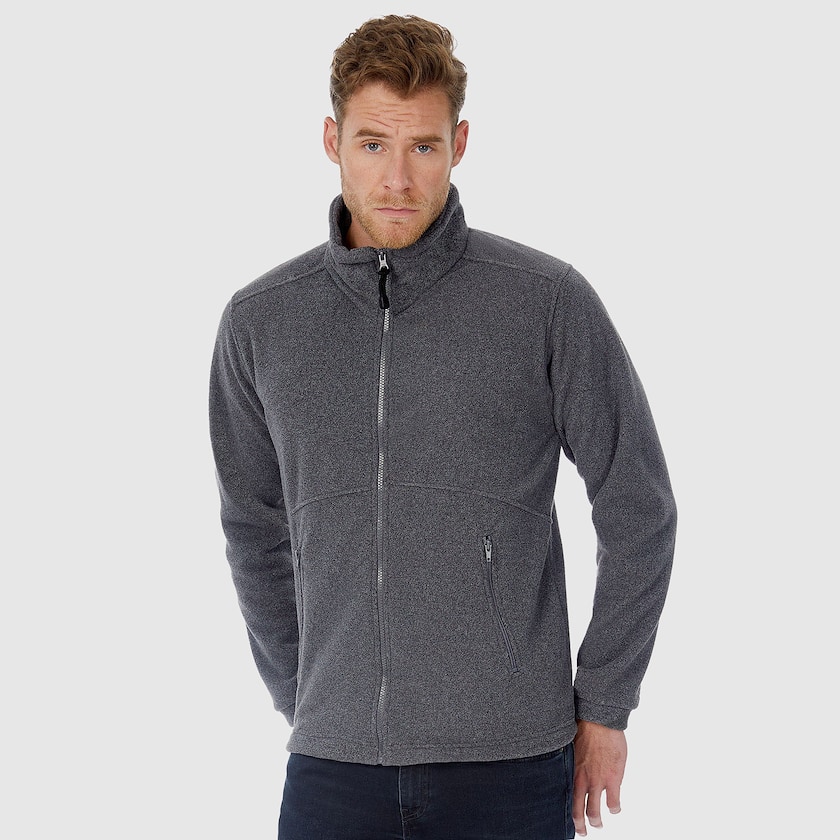 Kräftige Fleecejacke mit langem Reißverschluss von B&C. Die Jacke hat zwei Taschen mit Reißverschluss. Geliefert wird einzeln verpackt in Plastikhüllen. Eine schöne und warme Fleecejacke mit Reißverschluss.