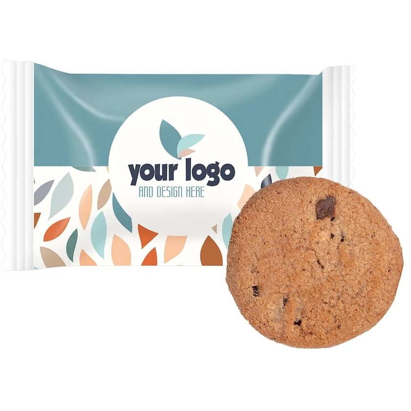 Handgefertigte Keks, gefüllt mit köstlichen Schokoladenstückchen. Die gesamte Verpackung wird nach Ihren Wünschen bedruckt.
