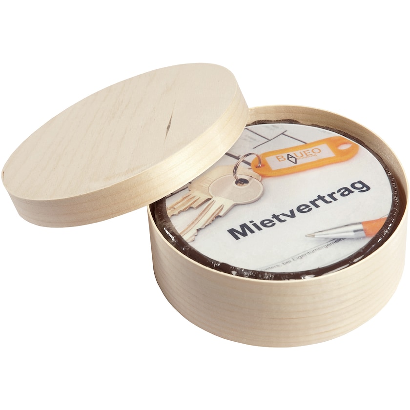 Torte mit 4-Farbdruck auf der Oberfläche, die in einem schönen Holzschachtel geliefert wird. Der Druck erfolgt mit Zuckerkulör auf einer dünnen Zuckerschicht. Die Torte gibt es in den Geschmacksrichtungen Schokolade und Orange. Die Haltbarkeit wird ab dem Liefertermin berechnet.