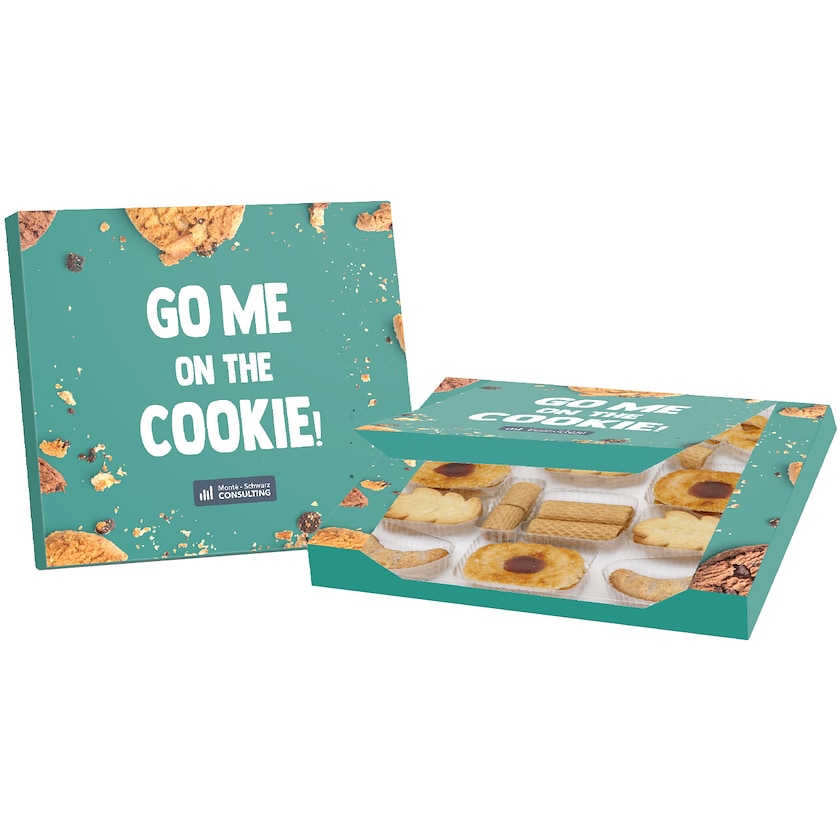 Kekse von Bahlsen in Verpackung mit eigenem Aufdruck. Enthält eine wunderbare Mischung aus gemischten Keksen. Der Druck ist komplett klimaneutral.