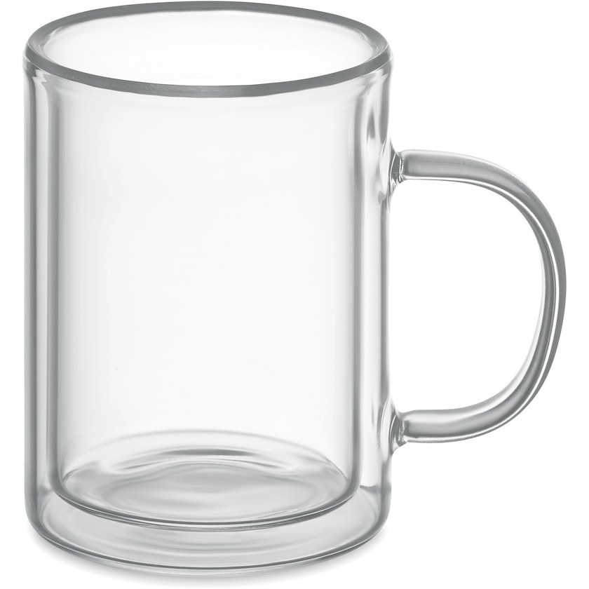 Glastasse mit 4-Farbfotodruck. Charlingford hat doppelte Wände, die das Getränk länger warm bzw. kalt halten.
