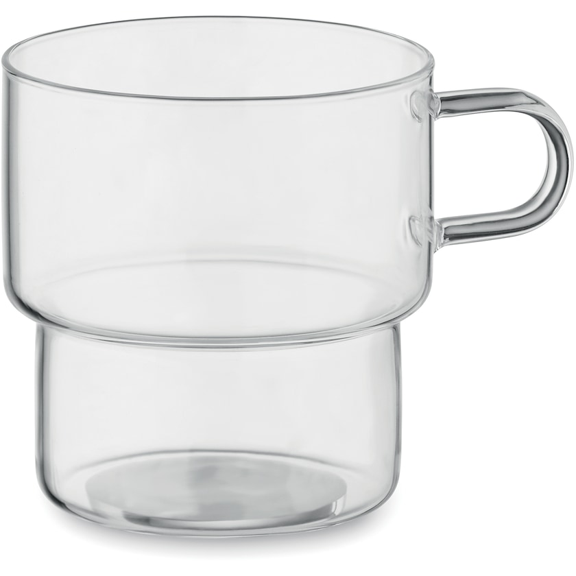 Stapelbarer Glasbecher aus langlebigem Borosilikatglas. Perfekt für Kaffee und Tee.