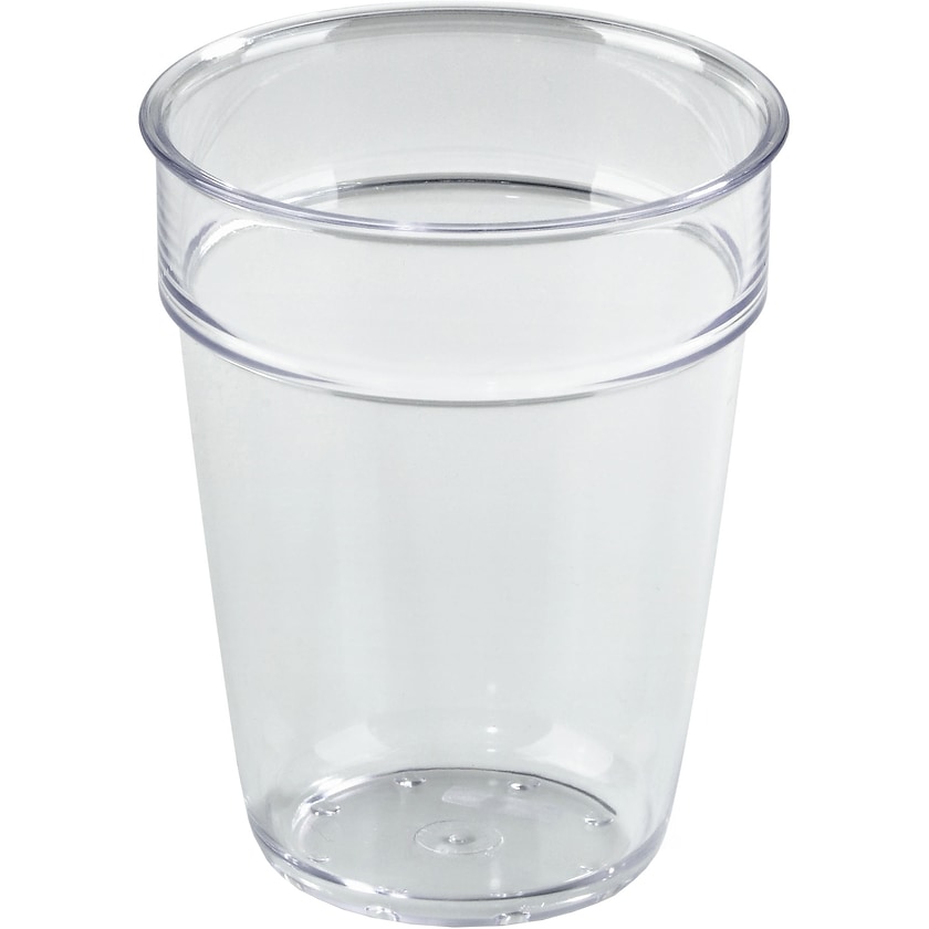 Stapelbares Plastikglas. Passt zu vielen Gelegenheiten. Nur1-Farbdruck möglich.