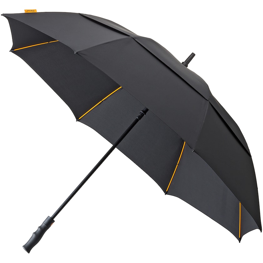 Hochwertiger Golfschirm mit Streben und Schaft aus Glasfaser. Der Regenschirm hat ein Ventilationsystem und einem bequem gummierten Griff. Wird mit einem Etui geliefert.