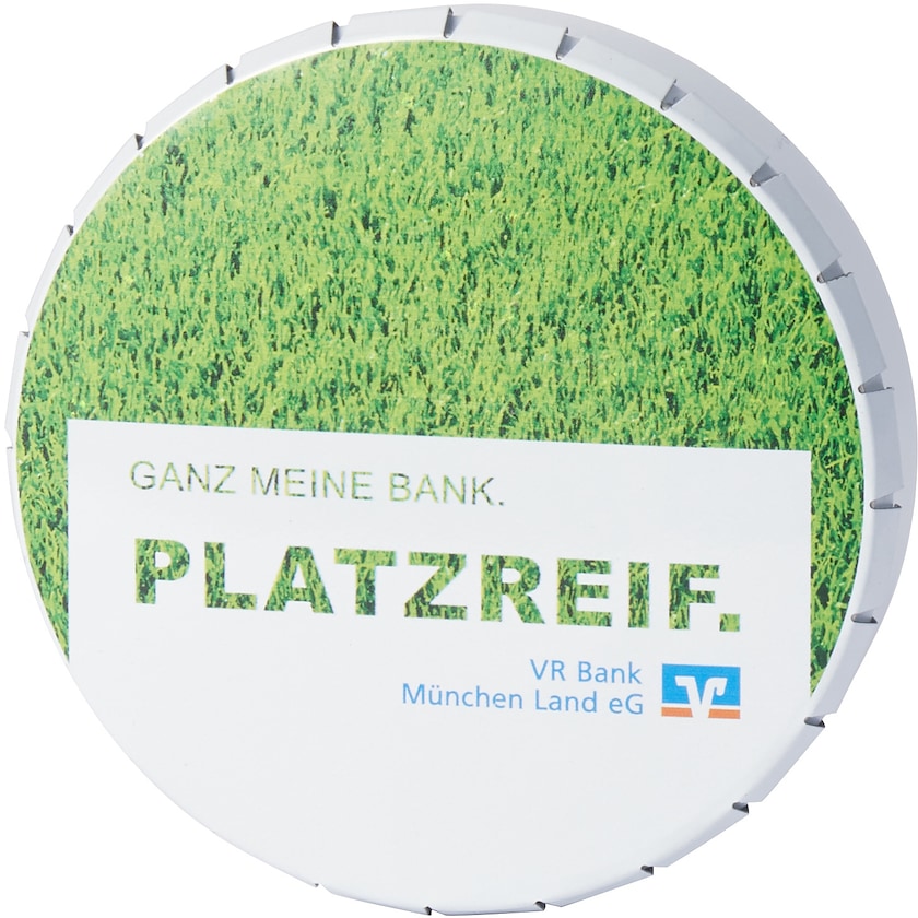Blechdose mit Tees in der Farbe Ihrer Wahl. Die Blechdose enthält 15 Tees mit 70 mm Länge. Der Preis enthält 4-Farb-Fotodruck auf der Blechdose und einfarbiger Druck auf den Tees. Die Tees können auf auf der Seite (max. Druckfläche: 34 x 4,3 mm) oder dem Kopf (max. Druckfläche: Ø 9 mm) bedruckt werden. Ein schönes Geschenk für Golffreunde!